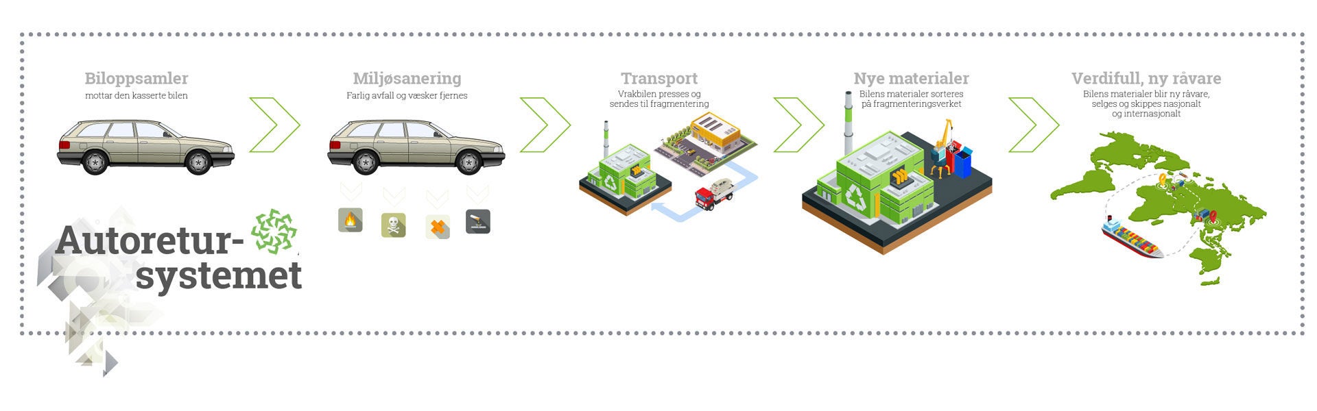 Ansvarlig gjenvinning er en viktig del av det å ta vare på naturressursene, redusere CO2-utslippene og minske avfallshåndteringen. Ved å samle inn og gjenvinne kasserte kjøretøy hindrer vi at mennesker og natur eksponeres for farlige miljøgifter og vi sparer miljøet for store belastninger knyttet til uttak og produksjon av nye råvarer.